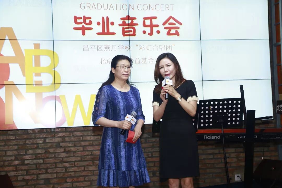 北京彩虹公益基金会童书盟女士和昌平区燕丹学校校长王涵女士一同上台致辞