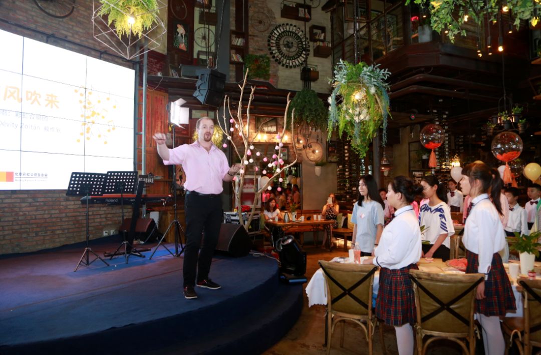 毕业音乐会上,外教Dévity Zoltán指挥着合唱团